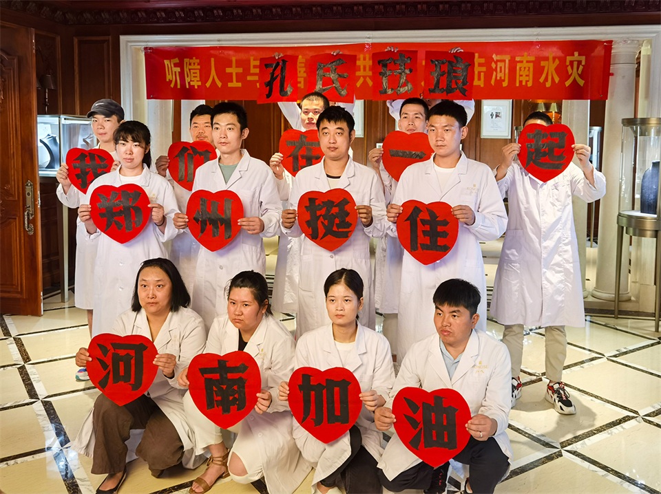 中华孔子学会孔子后裔儒学促进委员会常务理事、孔氏(北京)国际钟表有限责任公司董事长、孔氏珐琅创始人孔令俊,代表公司的残障员工通过华民慈善基金会向河南灾区捐款援助,全体员工也纷纷为河南人民加油打气,奉献爱心。孔氏珐琅的工艺师中,有超过80%成员是听障人士。出席捐赠仪式的儒促会副秘书长孔繁盈说,爱心企业的爱心奉献,让我们感受到大爱无疆的力量。