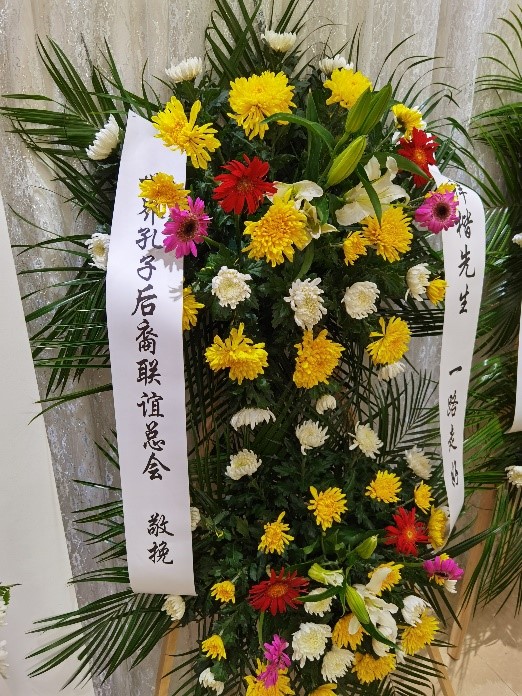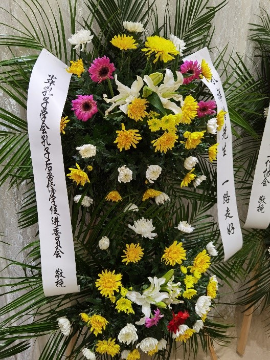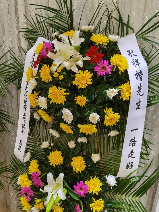 世界孔子后裔联谊总会、中华孔子学会孔子后裔儒学促进委员会、孔子世家谱常态化续修工作协会向孔祥楷先生敬献了寄托哀思的花圈,并向衢州孔氏南宗家庙管理委员会致唁电,孔德墉会长携子孔众先生以个人名义也敬献了花圈。