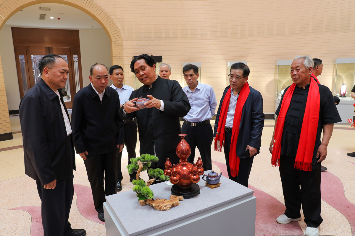 当天,“大道天成——孔相卿大师从艺45年成就展”在这里举行,展出了孔相卿大师的100多件代表性作品。其中,位于展区C位、引发热烈讨论的这几件钧瓷作品,是“钧窑铜系金红釉”首次面世之作,代表了孔相卿大师最新的研发成果。