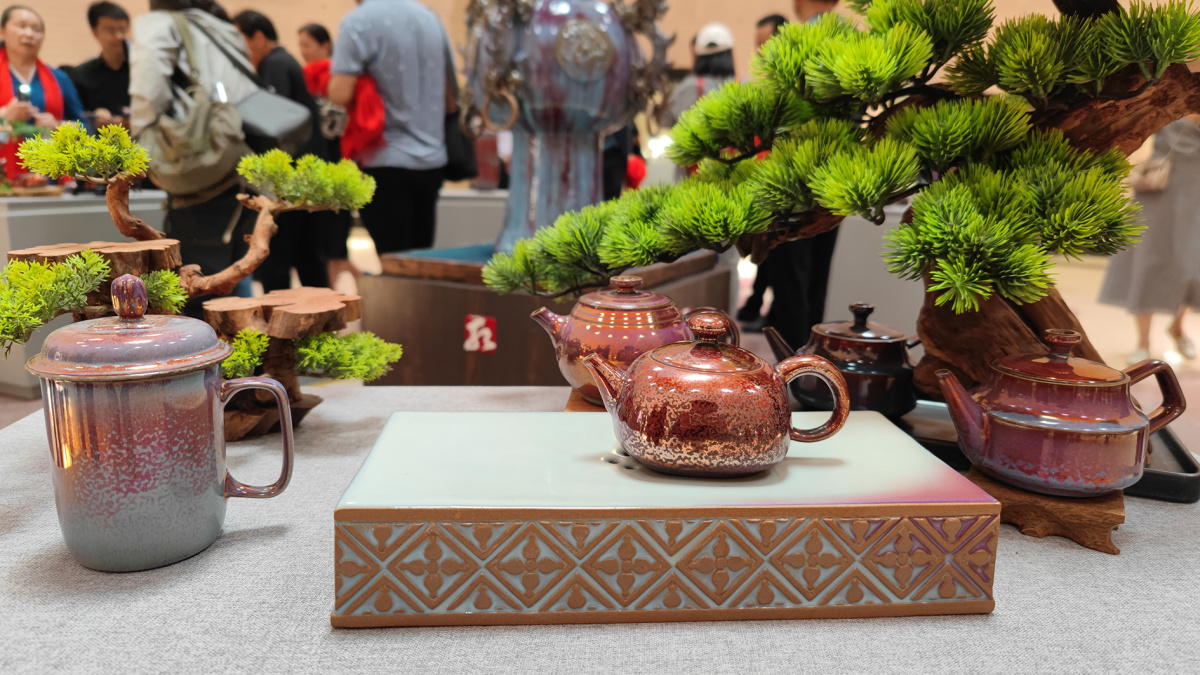 5月13日,位于禹州的中国钧瓷文化园展厅里人头攒动,观众们的目光集中在展厅中央的几件钧瓷作品上。这几件作品呈现罕见的金红色,在光照下闪耀着灿灿金光,引得观众们啧啧称奇、不停拍照。