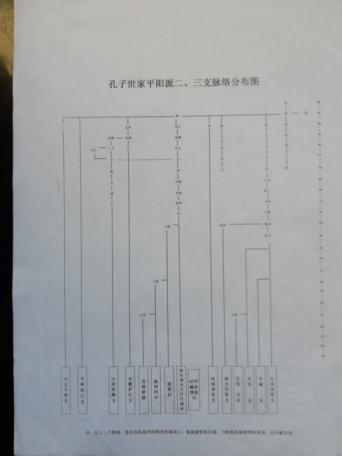 泗,与父隐居瑞安太日,为三支之祖。后裔除留瑞安太日、上、下村、增家垟、平阳湖岭上岙、温州四甲与龙港新渡外,外迁的有安徽庐江支、江阴梧塍支、吉林滨江支、河北辛集支,这支上谱人丁人数达38487人。(以下附《孔子世家平阳派长支传承谱系追溯》与《浙江平阳派二、三支脉络分布图》)