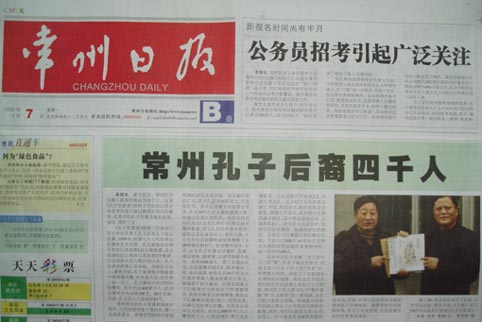《常州日报》头版大幅标题报道常州孔子后裔和孔子世家谱续修工作