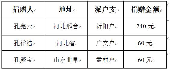 感谢孔宪云、孔祥浩、孔繁宝宗亲捐赠